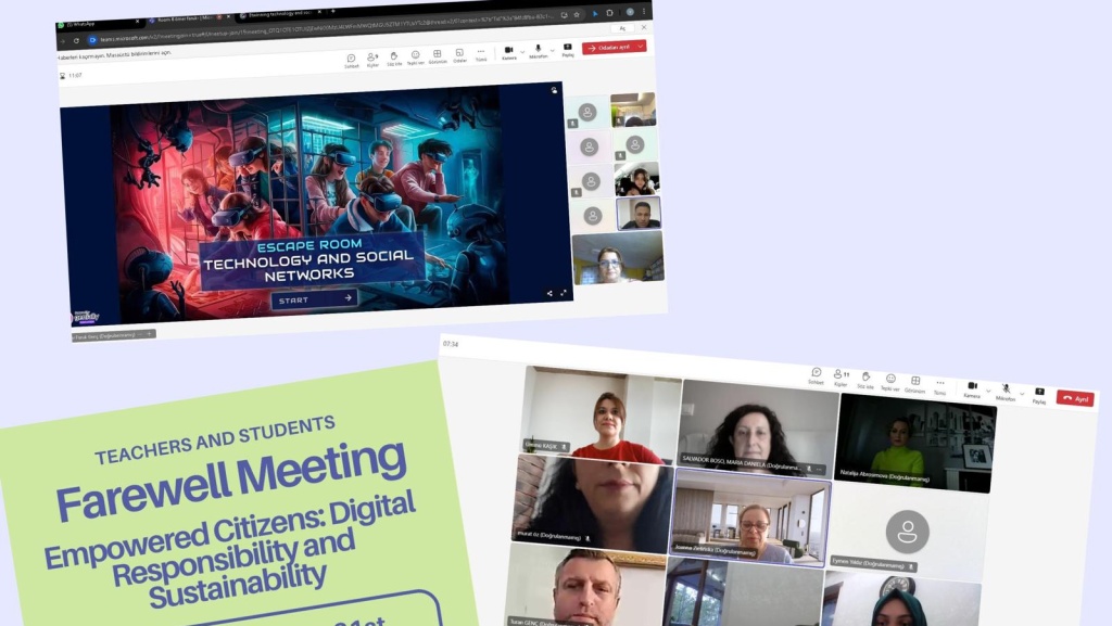 9 yurt içinden ve 9 yurt dışından olmak üzere toplam 18 okulun katılımıyla yürütülen Empowered Citizens: Digital Responsibility and Sustainability isimli uluslararası eTwinning projemizin 5. çevrimiçi toplantısını gerçekleştirdik ve projemiz başarıyla tamamlandı.